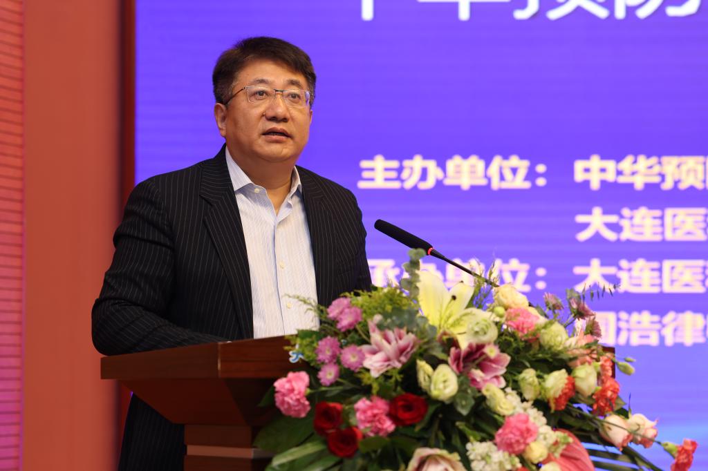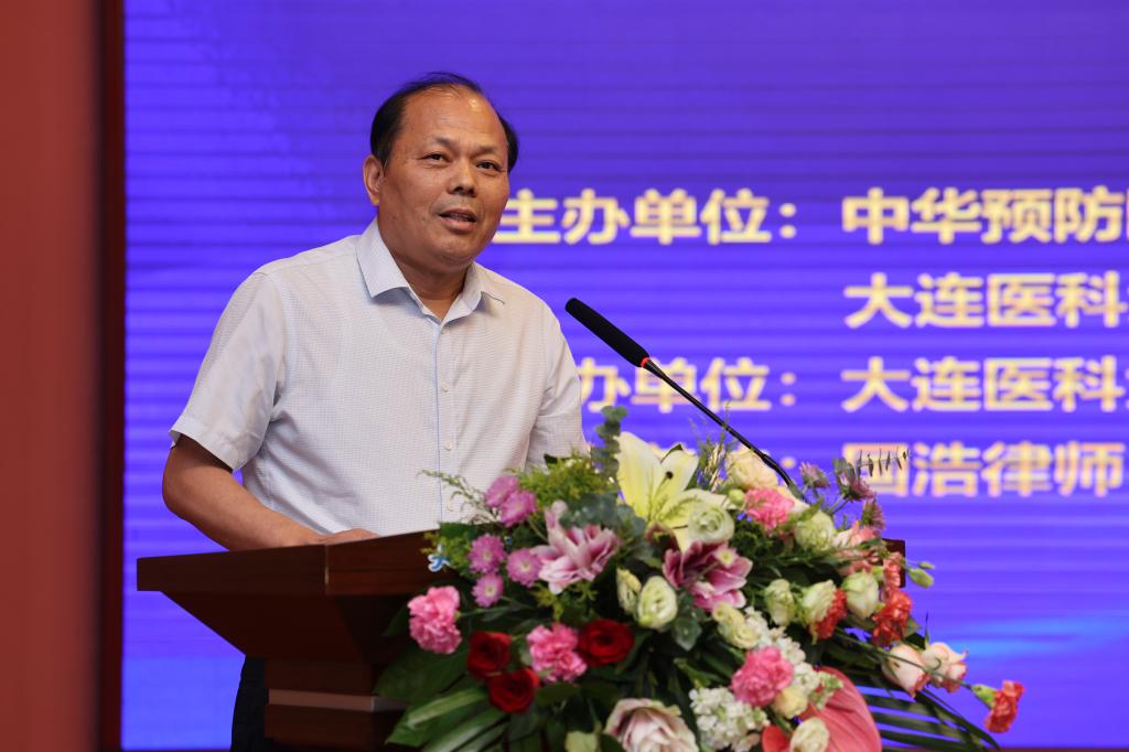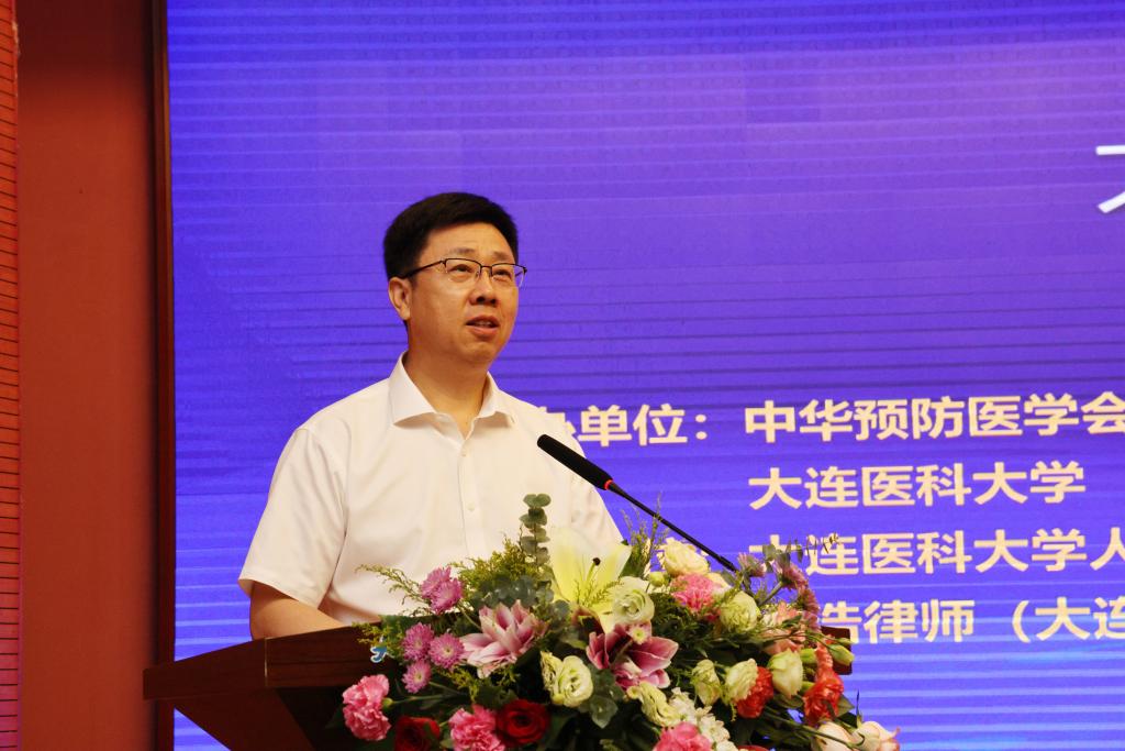 开幕式由我校人文与社会科学学院党总支书记兼副院长、中华预防医学会公共卫生管理与法治分会常委石悦主持。我校党委副书记佟春光、中华预防医学会副秘书长刘霞、辽宁省卫生健康委二级巡视员焦龙友、大连市卫生健康委员会副主任赵连、国浩律师(大连)事务所主任张旭涛、中华预防医学会公共卫生管理与法治分会主任委员申卫星等领导和专家先后致辞。