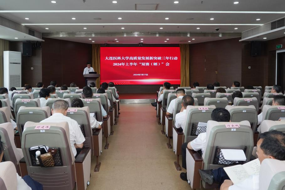 7月17日下午,学校在校部509会议室举行“大连医科大学高质量发展新突破三年行动2024年上半年‘双赛(晒)’会”。学校党委书记刘晓东,党委副书记、校长赵杰出席会议。会议由党委副书记佟春光主持。