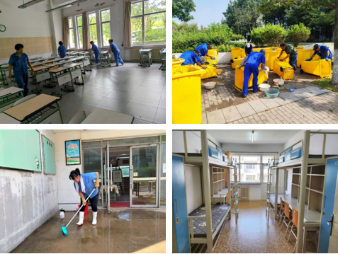 环境保障,展现大医校园靓丽风景。后勤管理处全力做好校园室外、教学和生活环境保障工作,洗刷、消毒垃圾桶290余个,与旅顺环卫部门沟通,指派三台环卫车辆和60余人次环卫工人保障16吨左右生活垃圾的及时清运;安排专人全天守护近期受风向影响的平潮滩和晚潮滩,确保海滩和校园路面清洁到位。开学前完成学生公寓整体环境消毒、墙面黑渍清除和811间学生公寓房间的清扫工作,清洁消毒公寓内205台洗衣机、17台洗鞋机及181台电吹风机等公用自助设施。